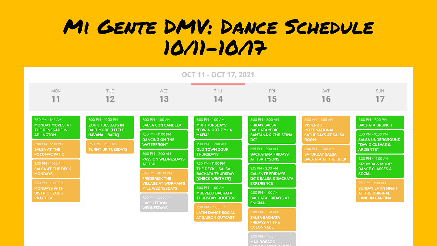 Mi Gente DMV: 10/14-10/17 - Dance Schedule