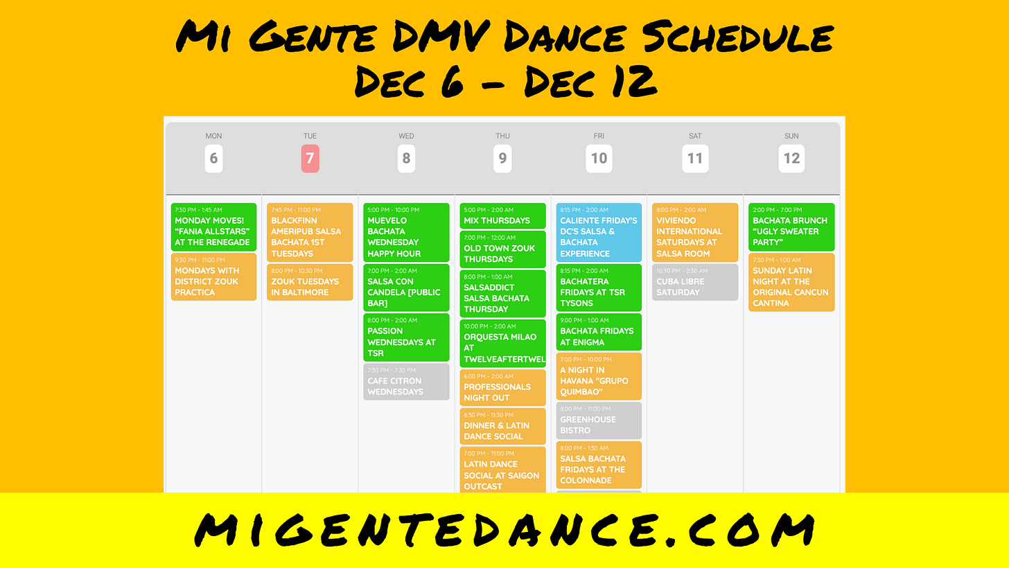 Mi Gente DMV Dance Calendar: 12/6-12/12