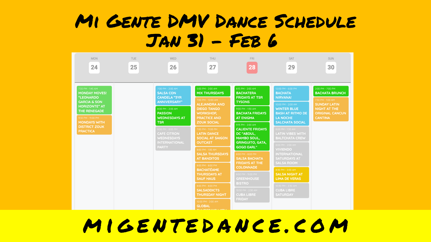 Mi Gente DMV Dance Calendar: 1/31-2/6