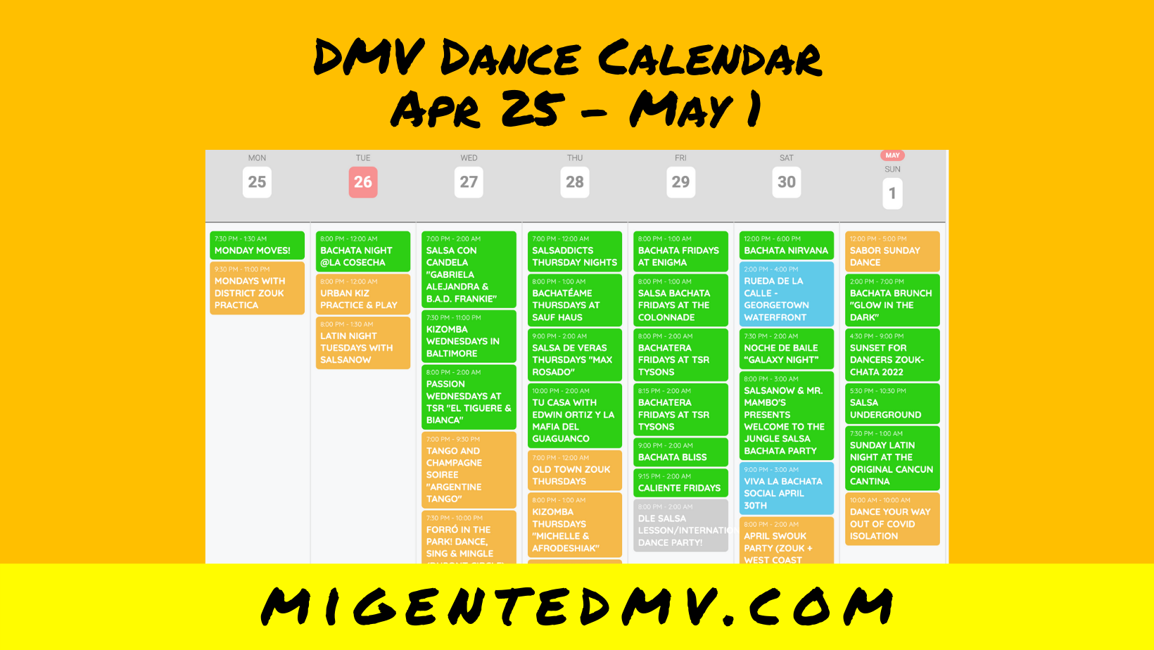 Mi Gente DMV Dance Calendar: 4/25-5/1