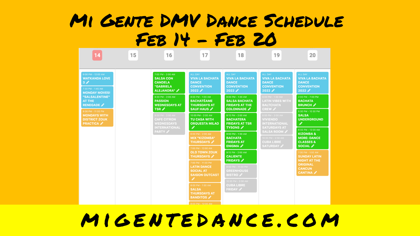 Mi Gente DMV Dance Calendar: Feb 14-Feb 20