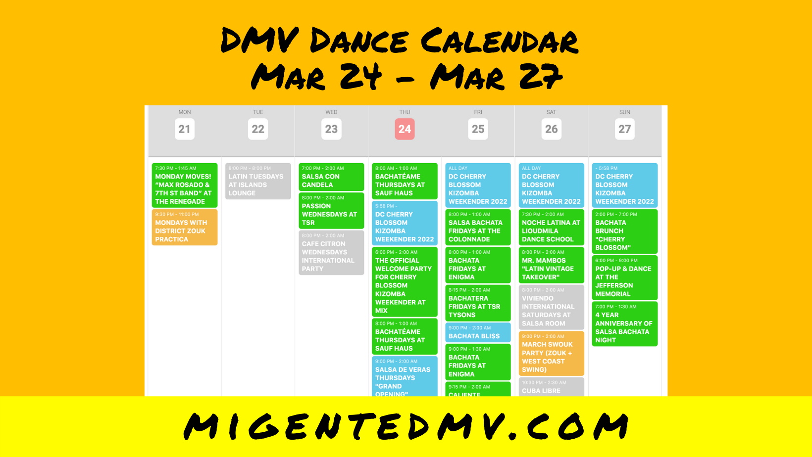 Mi Gente DMV Dance Calendar: Mar 24-27
