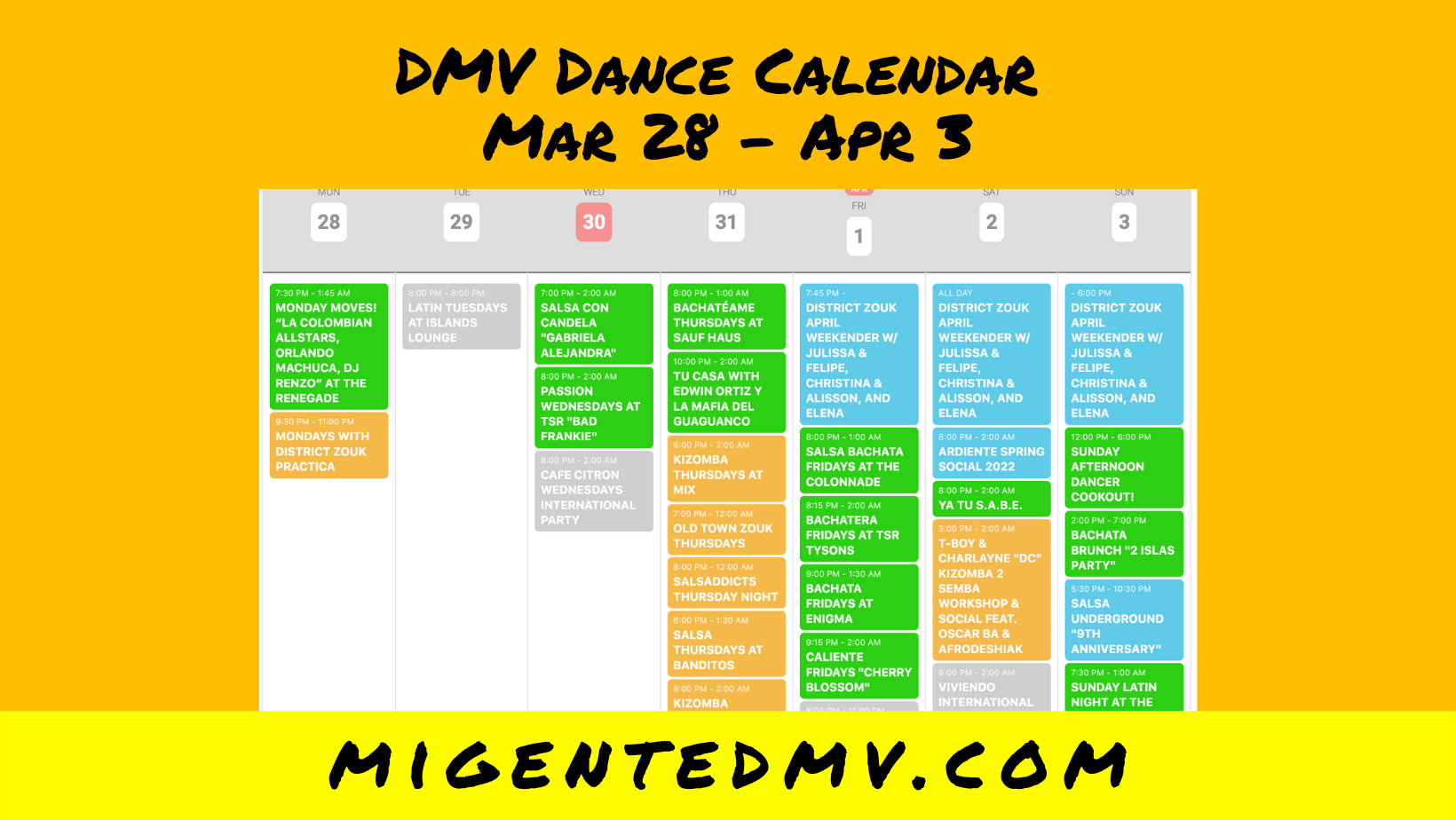 Mi Gente DMV Dance Calendar: Mar 28-Apr 3
