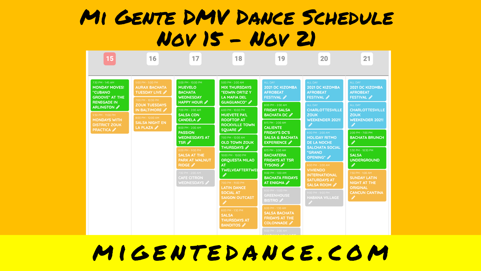 Mi Gente DMV Dance Schedule: Nov 15-Nov 21